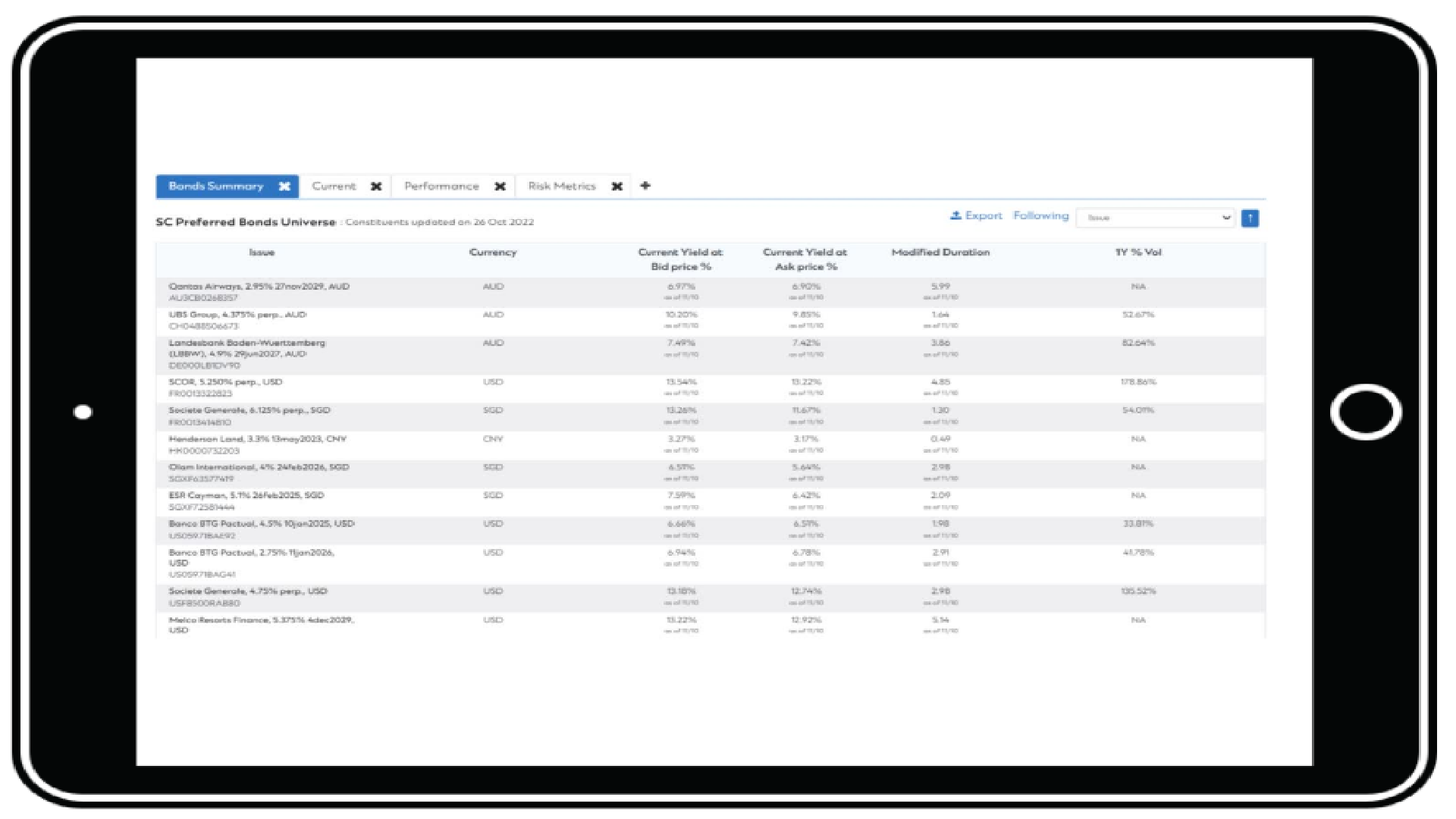 • For Bonds: Use ISIN or name. Typing “vodafone bond” will provide all bonds with the word vodafone in it.